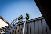 Ein besonderer Fokus lag auf der Menschenrettung über das Dach, die unter realitätsnahen Bedingungen mittels Drehleiter durchgeführt wurde – eine anspruchsvolle Aufgabe, bei der Technik, Teamwork und Kommunikation nahtlos ineinandergreifen mussten.